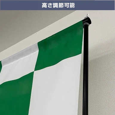 高さは700~2,300mmサイズ内で自由に調整可能。横幅は棒の連結数によって調整が行え、1,500mm、2,250mm、3,000mmの3サイズから設置が行えます。