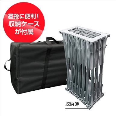 本体には、持ち運びに便利なキャスター付きのキャリーケースが付属しています。会場移動を伴う展示会やスポーツ大会の装飾などにピッタリです。