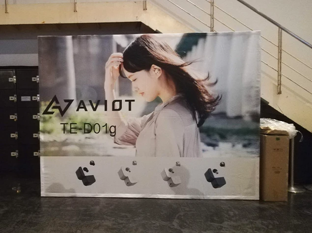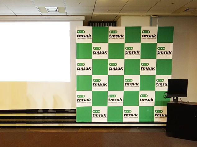 バナースクリーン本体 バナースクリーン 1台 生地 防炎トロマット 製作方法 昇華転写、片面フルカラー(CMYK値通り) 仕様 周囲ヒートカット、上下棒袋 2枚継ぎ 防炎シール -