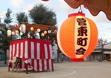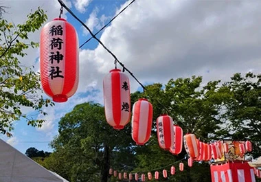 祭会場を華やかに演出する会場装飾用の祭り提灯は、遠くからでも雰囲気が伝わり来場者の気分を高める重要なアイテムです。通路沿いや櫓(やぐら)まわり、会場入口などにオーダー印刷を行った祭り提灯を連ねて設置することで、昼夜を問わず祭りらしい空間を演出できます。