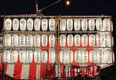 スポンサー企業名や店舗名を入れた協賛提灯も、多くの祭で使用されています。協賛用の名入れ作成についてはこちらをご覧ください。