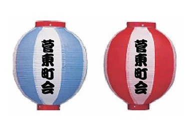 下記でご紹介しておりますのは伝統的なお祭り提灯として違和感なく使用ができる和紙製ですが、ビニール素材の本体もございます。ご所望のお客様はお申し付け下さい。