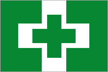 緑地に対して白色の十字を配置した労働衛生のシンボルとして誕生した衛生に関する行事に用いる旗。