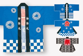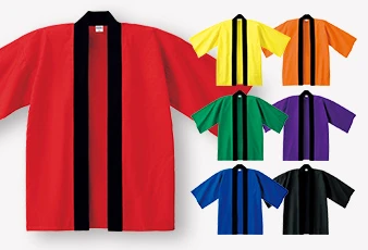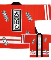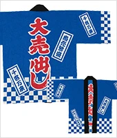 当店にて取り扱いさせて頂いております販促デザインの法被を下記にご紹介いたしております。短期セールのスタッフ衣装をお考えの際には、こちらの襟に名入れ印刷しオリジナル半纏制作をご検討くださいませ。