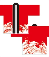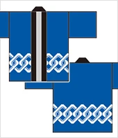 腰柄法被は事前に市松などがプリントされている事もあり製作コストやイベント内容などご用途の応じて「襟のみ」「襟と背面」この二つがデザイン位置の定番となります。細かい線幅もしっかり再現し、お客様だけのオリジナル腰柄法被のプリント作成をさせて頂きます。
