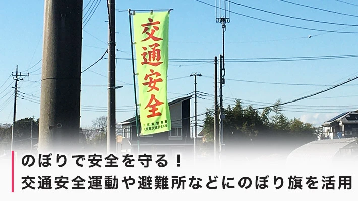 人々の安全を守るのぼり旗について、交通安全や避難所への案内など具体的な活用方法と共にご紹介しました。