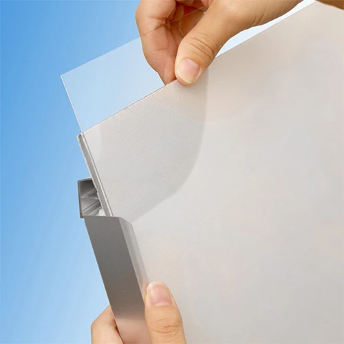 9mm幅フレームは、見た目がシャープなだけでなく、指が掛かりやすいので開閉もラクラク。前面からパカッと開くだけで、ポスターの入れ替えがあっという間に完了します。