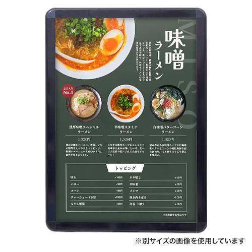 フレームが細いタイプはすっきりとしたスタイリッシュな印象に仕上がりますので、カフェのメニュー掲示やアートポスターなど、内容をより引き立てたい場面に最適です。