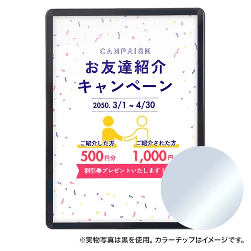 「メディアグリップ(MG-44R) 屋外 A0」は前面のフレームが四方にパカッと開く「前面四方開閉」仕様となっており、ポスターの差し替え作業がスムーズに行えます。定期的な入れ替えが必要な店舗・施設でも、手間をかけずに運用いただけます。