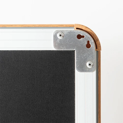 フレームの角には丸みを持たせた安全なR型デザインを採用。木目の柔らかな質感と相まって、お客様が触れる可能性のある通路や、安らぎが求められる空間にも安心して設置いただけます。