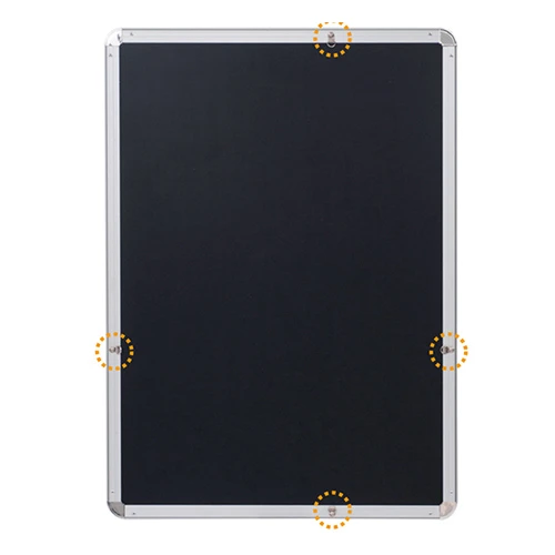 前面のフレーム4辺を手で開くだけで、ポスター交換が可能です。大型のB1サイズであっても、壁から降ろすことなくスムーズに作業が完結。メンテナンスの負担を軽減し、常に美しい展示を維持します。