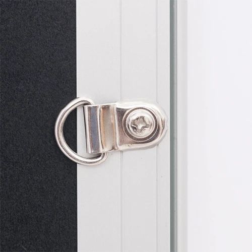 背面の4辺すべてに吊り具を配置しており、書面の様式に合わせて縦横どちらの向きでも掲示可能です。シンプルで扱いやすい構造が、総務や管理部門での設置業務を確実にサポートします。