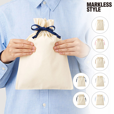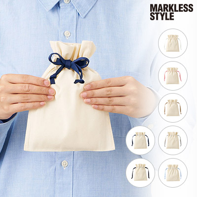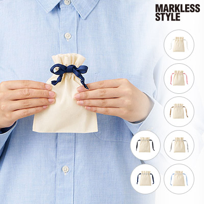 - コスメや小物を可愛くラッピング。7色のリボンから選べるコットン巾着。
