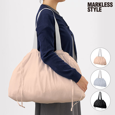 - 上品な光沢が日常を彩る。ゴムで小さくまとまる、大容量ファインライトポリバッグ。
