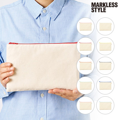 整理整頓をスマートに。カラーファスナーが機能と個性を引き立てる、フラットなキャンバスポーチ。