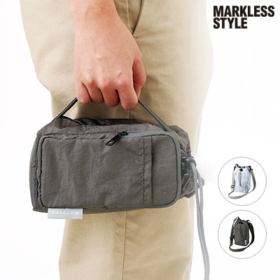- サイドのホックでフォルムを変えられる軽量の保冷ポーチ。
