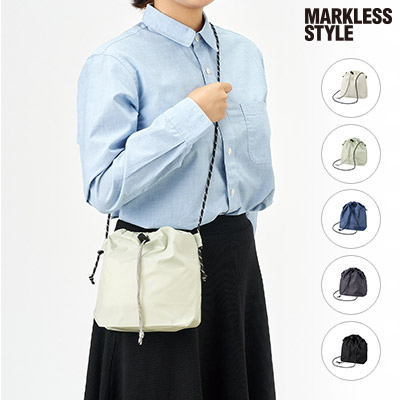 - サコッシュのように薄い再生ファブリック使用の巾着ショルダー。
