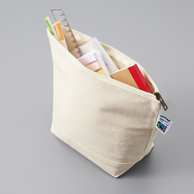 タフなキャンバス生地を使用し、毎日使うポーチ制作に最適なフェアトレードコットンキャンバスデイリーポーチ(M) (TF-0012)。大きめのMサイズは、トラベルグッズや文房具などをまとめて入れることができます。ボトムの切り替えやスモーキーなカラー展開も魅力なほか、発展途上国の人々の支援に繋がるフェアトレードコットンを使用しており、SDGsを意識したグッズ発注にお薦めです。激安の値段でオリジナル名入れを承ります。