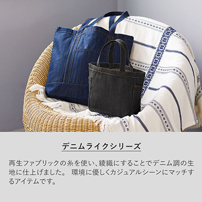 | 備考 | ■地球に優しい再生ファブリック糸を使用 ■糸を綾織にすることでデニム調に仕上げました ■素材の特性上、ネップ(小さな糸の固まり)が出る場合があります。 また、主な素材はポリエステルやコットンとなりますが、その混率も生産毎に変動します。 |