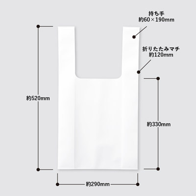 | サイズ | 本体/約W290×H330(持ち手含む520)(mm) 持ち手/約W60×H190(mm) 折りたたみマチ/約120mm |