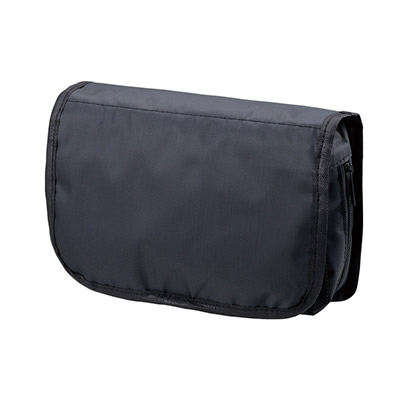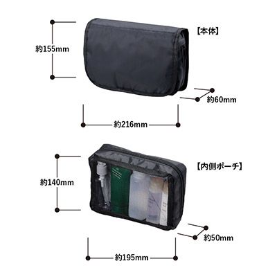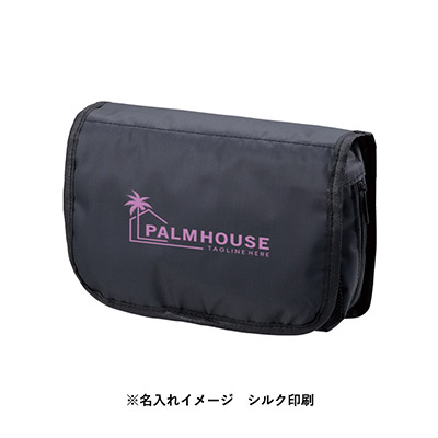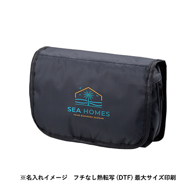 「ベーシックハンギングポーチ」(品番:TP-0057)は、出張や旅行の滞在先をより快適にする収納アイテムです。最大の特徴は、本体を展開してそのまま壁面に掛けられるハンガーフック仕様。奥行きのある広めのマチ設計により、厚みのあるボトル類も安定して収納でき、散らかりがちな洗面周りをスマートに整理できます。ロゴプリントを施せば、実用性を重視するビジネスパーソン向けのノベルティとして高い効果を発揮します。当店では激安価格でのオリジナル製作を承っており、格安で高品質なノベルティ提供をサポートいたします。