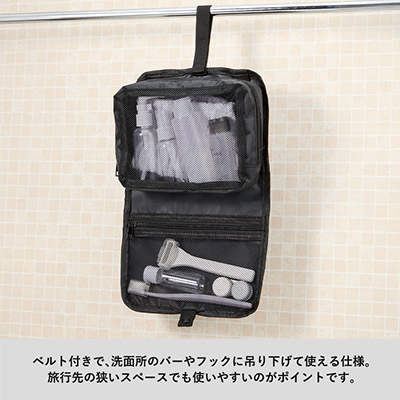 - 洗面周りの小物を吊るして一括管理。限られたスペースを最大限に活用できる、機能派パッキングポーチ。
