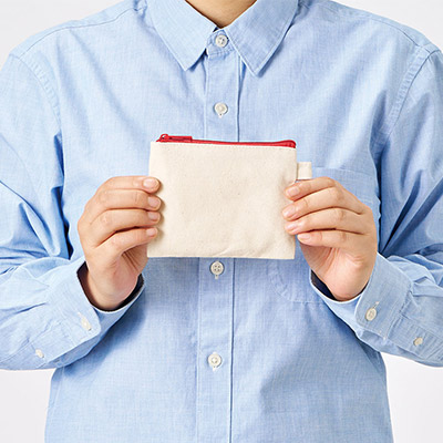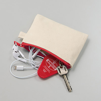 「カラーファスナーキャンバスフラットポーチ(SS)」(品番:TP-0052)は、シリーズ最小の愛らしいサイズ感が特徴です。ポケットにもスッと入る薄型設計で、バッグの中で行方不明になりがちな鍵、イヤホン、常備薬などの小物収納に最適。サイドのループにカラビナをつければ、ベルトループやバッグに吊り下げることも可能です。イベントの来場記念やアパレルの購入特典として、ロゴを名入れしたオリジナルグッズを激安価格で製作してみませんか?