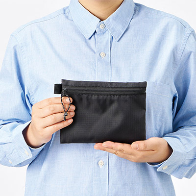 - 丈夫な生地がビジネスツールを守る。通帳や文具に最適な、高耐久フラットポーチ。