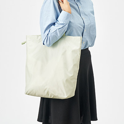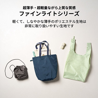 - 上品な光沢が日常を彩る。ゴムで小さくまとまる、大容量ファインライトポリバッグ。