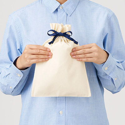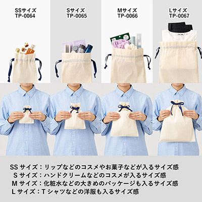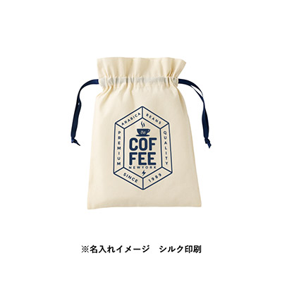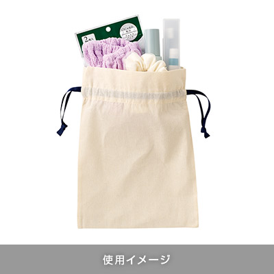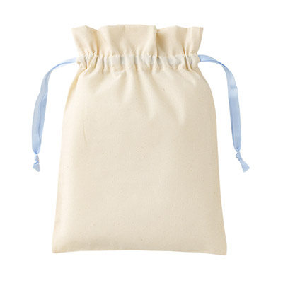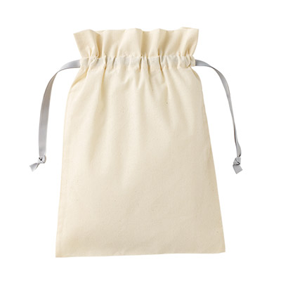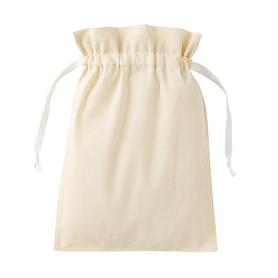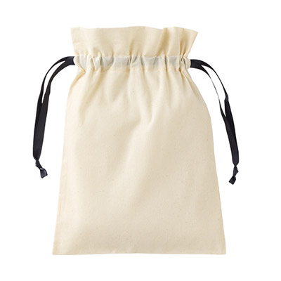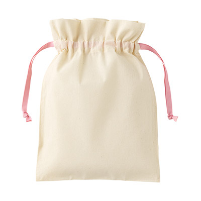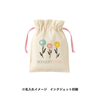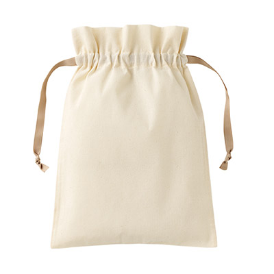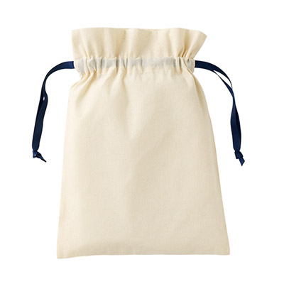 - 旅行や小物の整理に大活躍!名入れでブランド価値を高める、リボン付きコットン巾着。