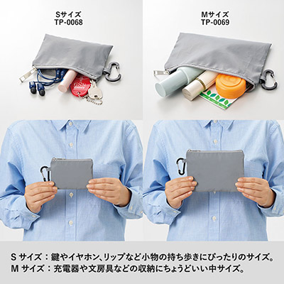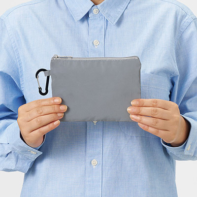 - スマホもガジェットもまとめてガード!名入れで視認性を高める、カラビナ付きリフレクターポーチ。