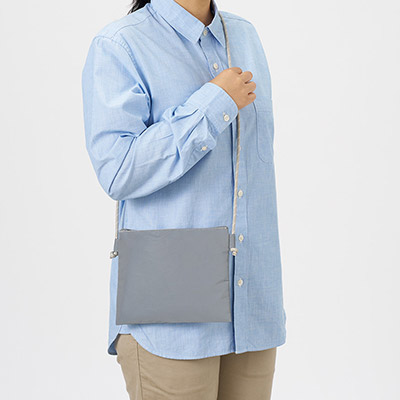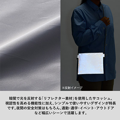 - 夜道も安心、光でガード!名入れで視認性を高める、実用的なリフレクターサコッシュ。