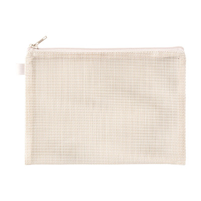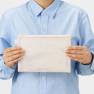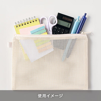 - 旅行も仕事もこれ一つで解決!中身が見えるメッシュ素材の、大容量フラットポーチ。