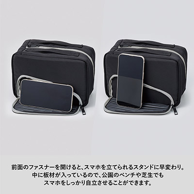 - ランチタイムに動画を満喫!スマホが立つ、画期的な保冷ポーチ。