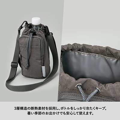 - 冷たさをキープして、手ぶらでお出かけ。収納力も抜群な、MOTTERU多機能ボトルサコッシュ。