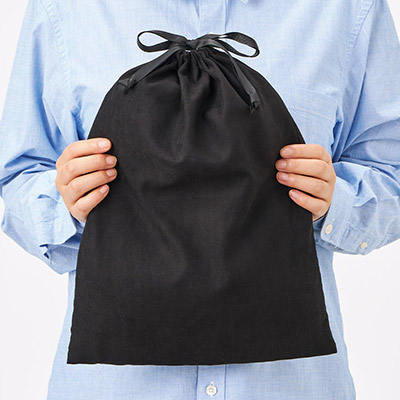 - Tシャツも包める収納力!旅のパッキングやギフトを格上げする、大判スウェード風巾着。