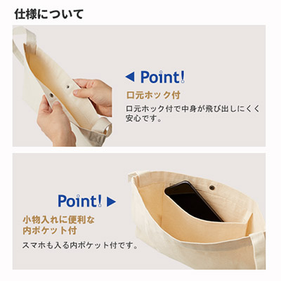 | 備考 | ■内ポケット付き 無漂白エコマーク認定商品(ナチュラル) ナチュラルのみインクジェット印刷可能です。 |