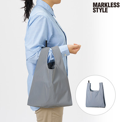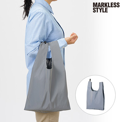「リフレクターマルシェバッグ(L)」(品番:TR-1430)は、夜間の視認性を高める反射素材を使用した、安全性の高いエコバッグです。Lサイズはスーパーでの買い出しに最適な大容量サイズ。約185mmの折りたたみマチを広げれば、たっぷりとした収納力を発揮し、毎日のお買い物を安心・安全にサポートします。持ち手の先に付いたゴムバンドでくるっとコンパクトにまとめられるため、サブバッグとしての携帯性も抜群です。企業ロゴを名入れプリントして、実用的で防犯機能も備えたオリジナルグッズを激安価格で製作しましょう。