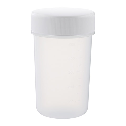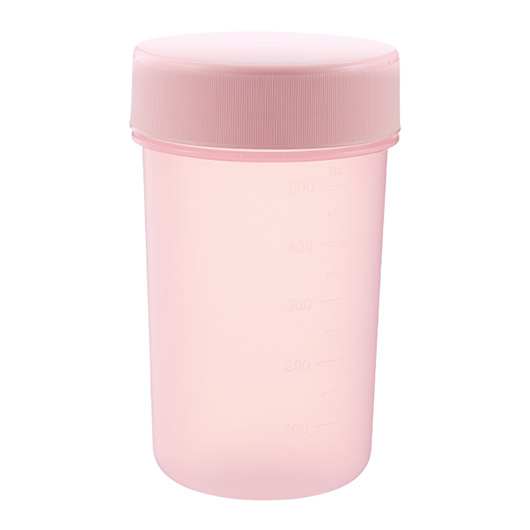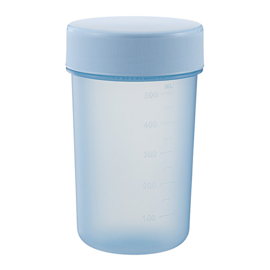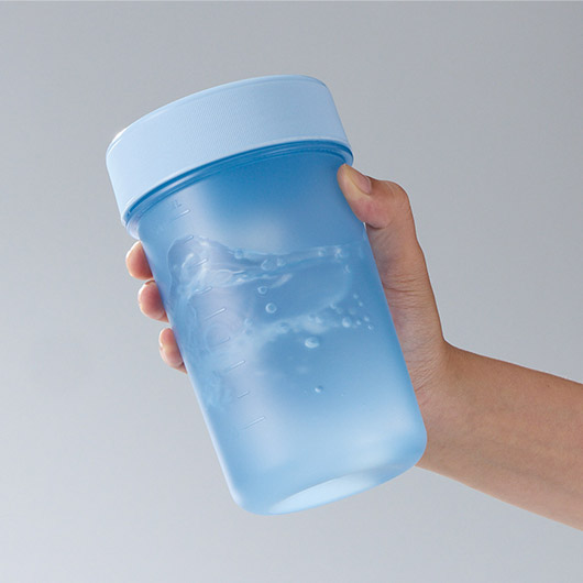 涼しげなフロスト調のボディには、50ml刻みの目盛りを刻印。印刷ではないため、ハードな使用や洗浄を繰り返しても消えることがありません。