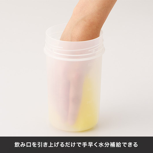 直径約93mm、高さ約152mm、680mlを入れられる大容量モデル。プロテインやワークアウトドリンクをたっぷり作れるサイズ感で、ハードなトレーニング中の水分補給をしっかりサポートします。