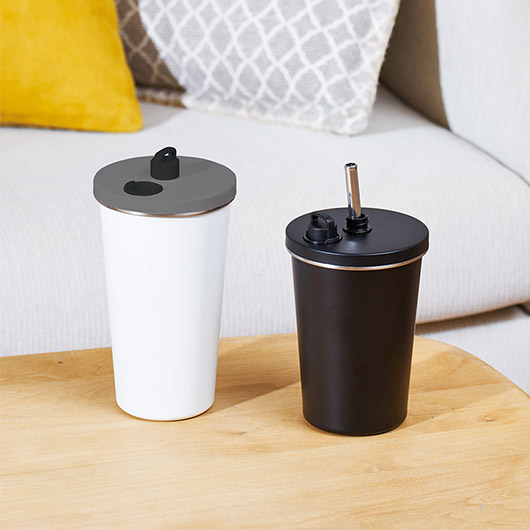 ステンレス真空二層構造が、飲み頃の温度を長時間キープ。冷たい飲み物も結露しにくく、PCや書類のあるデスク周りでも安心してご使用いただけます。
