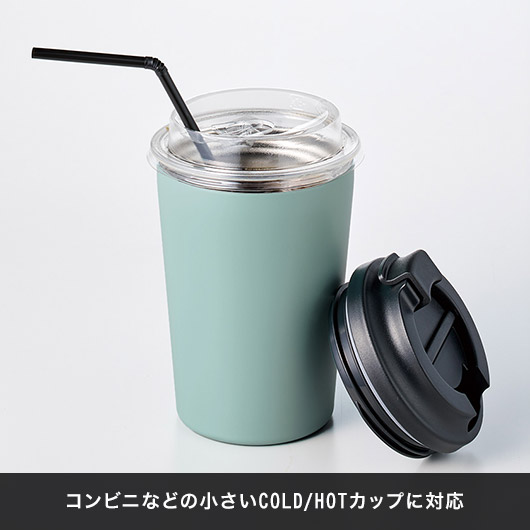 コンビニ等のカップがすっぽり収まり、ホルダーとして飲み頃温度をキープ。フタをしたままストローも使えるので、リップを気にする方やドライブ中も快適です。