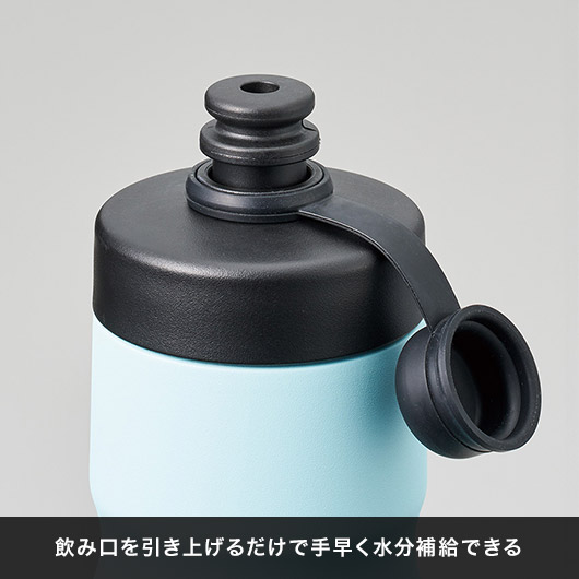 キャップ部分を引き上げるだけで飲める、スポーティーな飲み口を採用。片手でスムーズに開閉でき、サイクリングやウォーキングの最中でもストレスなく水分補給が可能です。